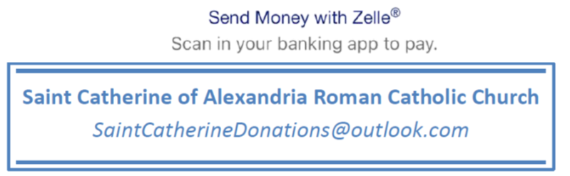 Registration for the retreat is $50.00 ($25 for Confirmation Candidates). You may stop by the parish office or pay electronically via Zelle with the code below.